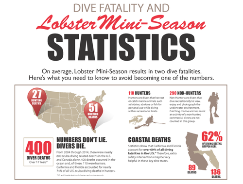 On average, Lobster Mini-Season results in two dive fatalities. This infographic shows you what you need to know to avoid becoming one of the numbers.