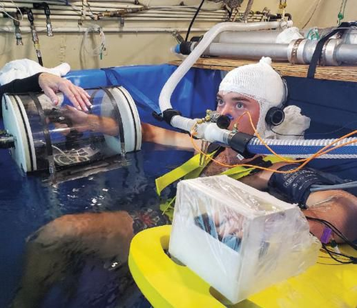 for the day and perform neurocognitive tests, measure electrodermal activity and collect data on subjective fatigue levels. On a trip to Winchester, Virginia, they met with the local public safety dive team and gathered information on cardiac rhythms.