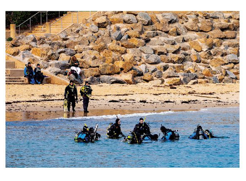 generally easy for veteran shore divers to recognize. Often this knowledge has been gained the hard way, such as through the loss of gear or a minor loss of footing during entry or exit. It’s imperative to understand that genuinely dangerous scenarios can and do occur. Some of these situations may not be so obvious for new beach divers; when in doubt, consult and heed the recommendations of lifeguards or a local dive shop. This decision must also extend to your dive
