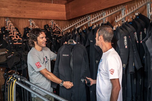 This brings us to a delicate topic: Everyone knows there are two types of divers: those that say they empty their bladders in their wetsuit during a dive and those that say that they don't… Use dedicated slightly chlorinated water to wash your wetsuit, but don't use the same water to rinse your mask or regulator, please! True, relieving yourself in your wetsuit is sometimes even recommended if you're freezing. Still, no one wants in someone else's urine, so please rinse your wetsuit properly before handing it back at the end of your dive trip. If you have your own wetsuit, rinse it separately. And how about a rented wetsuit? Well, the right thing to do is wash it with a bit of soap and a wetsuit-friendly disinfectant.