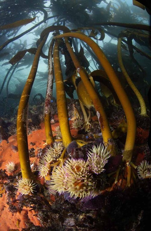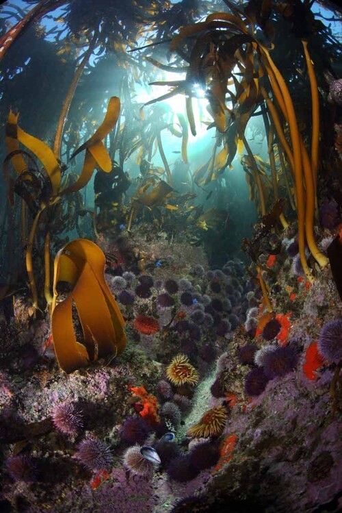 He currently shoots the underwater world using a Canon 5Dmkiii or 7Dmkii camera bodies in Nauticam housings. Lighting is supplied by one or two Inon Z330 strobes (usually at very different settings and positioned differently for each subject). All images are shot on manual settings at a set shutter of between 1/90th and 1/160th of a second with aperture settings based on ambient conditions. The majority of images are shot using a Tokina 10-16 fisheye lens that allows extreme close focus photography through a minidome port, although he also makes use of a Canon 16-35 f2.8 in a large dome port if shooting wider scenic images. It has taken him some time to learn the optimal settings for different depths, visibility and aspects within kelp forests as opposed to open water or other reef systems where similar setting produce very different results. Critical here is the understanding that the wide is captured by the camera settings while the close is captured by the strobe settings, with different strobe distances having a huge bearing on close exposure.